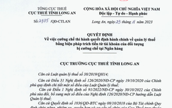 Mới đây, Cục Thuế tỉnh Long An công khai quyết định cưỡng chế thuế bằng...