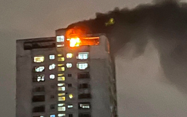 Lửa cháy dữ dội, khói đen bốc cao từ tầng áp mái của chung cư khiến cư dân hoảng sợ